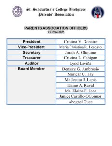 SSCW Parents’ Association Board SY 2024-2025